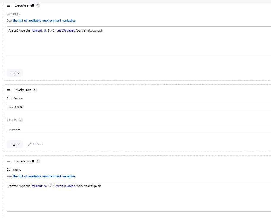 아까 만들 빌드 프로젝트에서 ant build를 사용하는 곳에 해당 버전을 사용한다고 선택해주면 된다.