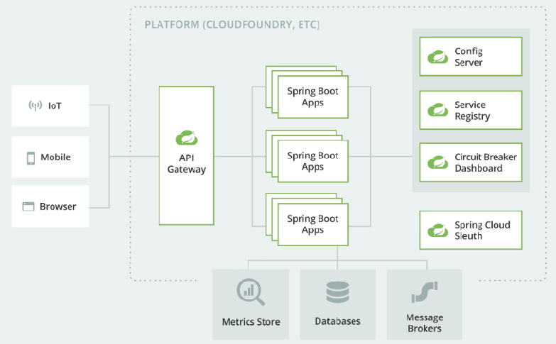 Spring Cloud는 다양한 모듈로 구성되어 있으며, 각각의 모듈은 특정 기능을 담당합니다. 대표적으로는 Eureka, Ribbon, Hystrix, Feign, Zuul 등이 있습니다.