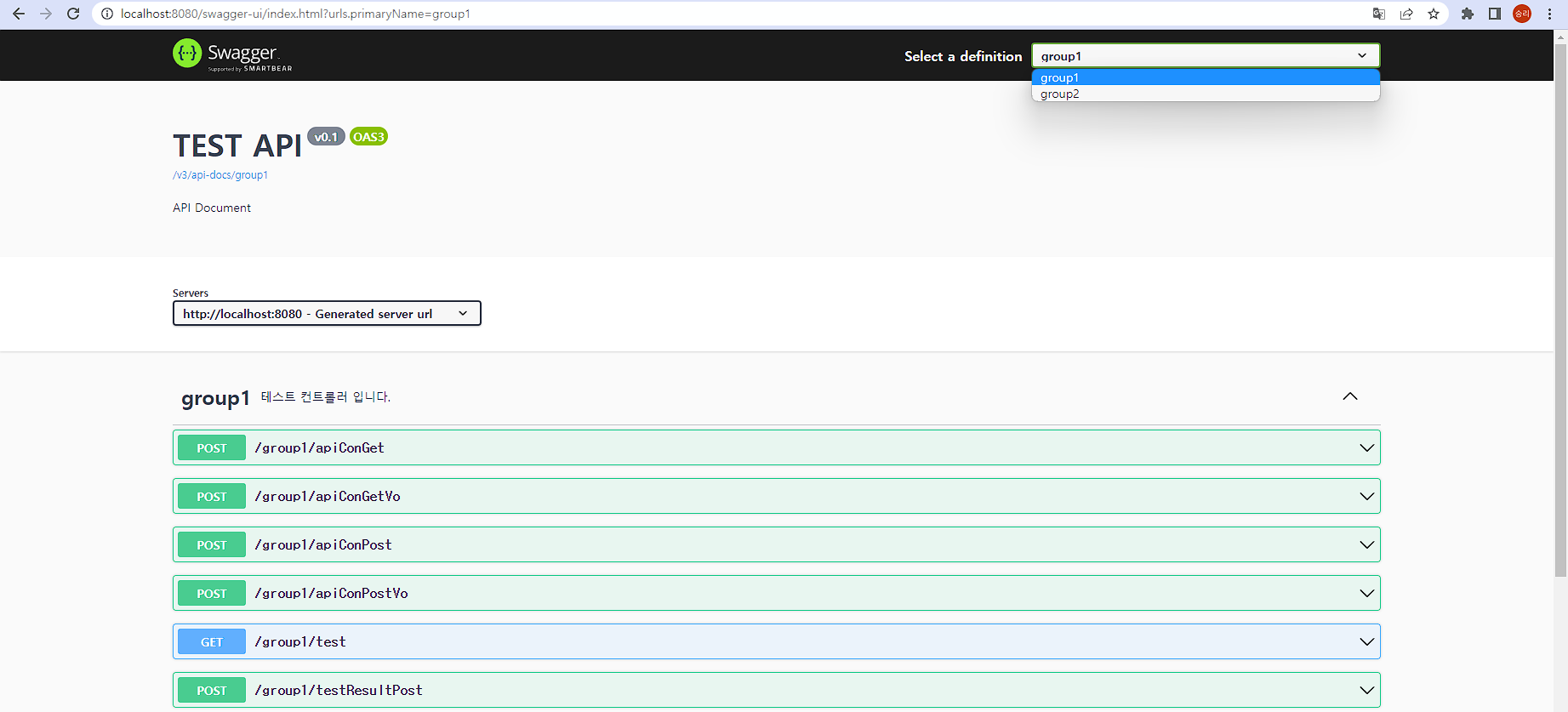 operations-sorter: alpha # alpha(알파벳 오름차순), method(HTTP메소드순)